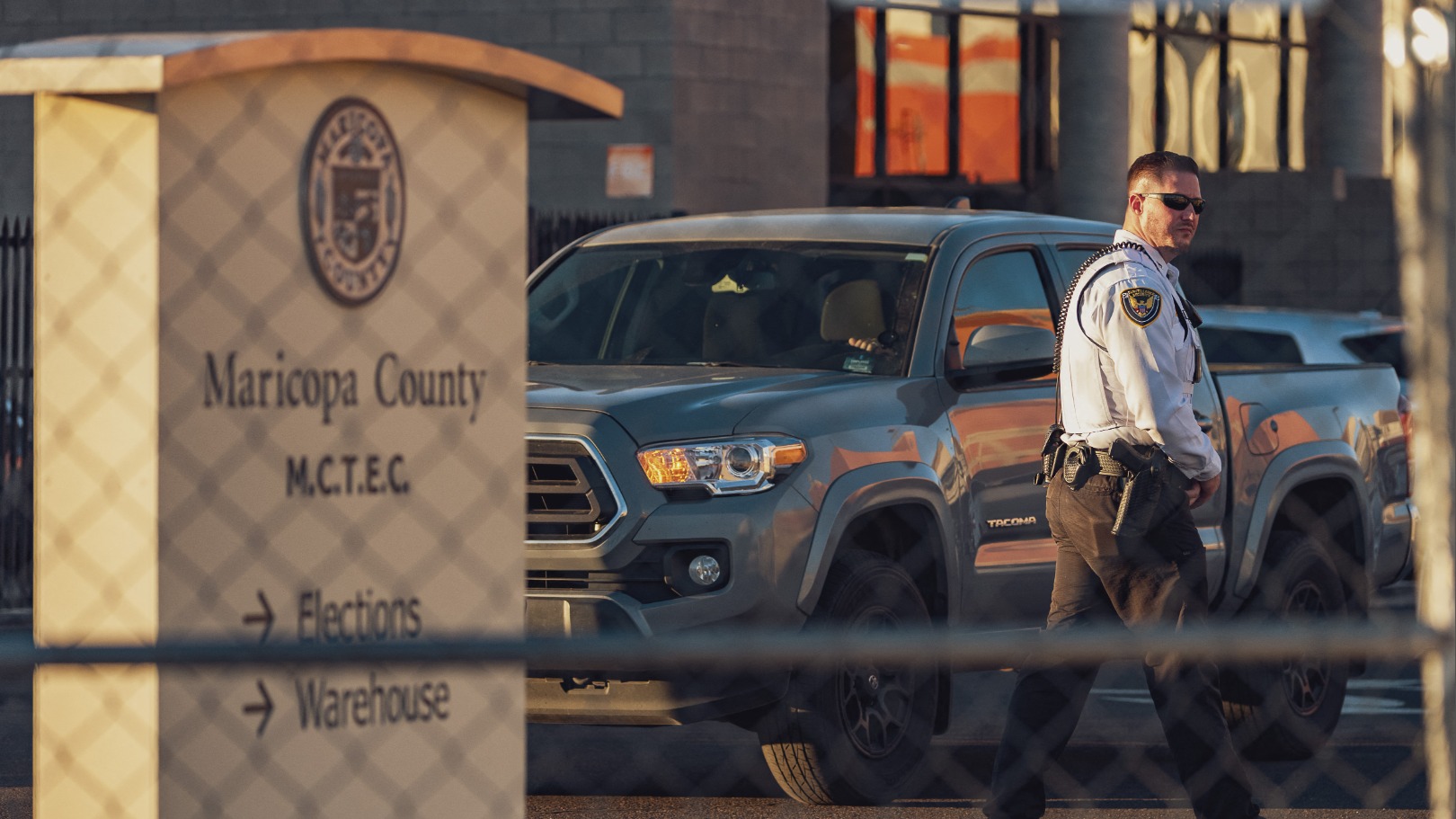 In Maricopa County in de staat Arizona wordt een van de meest gespannen stemtellingen van Amerika gehouden. Prikkeldraad, metaaldetectoren en gewapende bewakers moeten complotdenkers buiten de deur houden die beweren dat de stemming wordt vervalst.