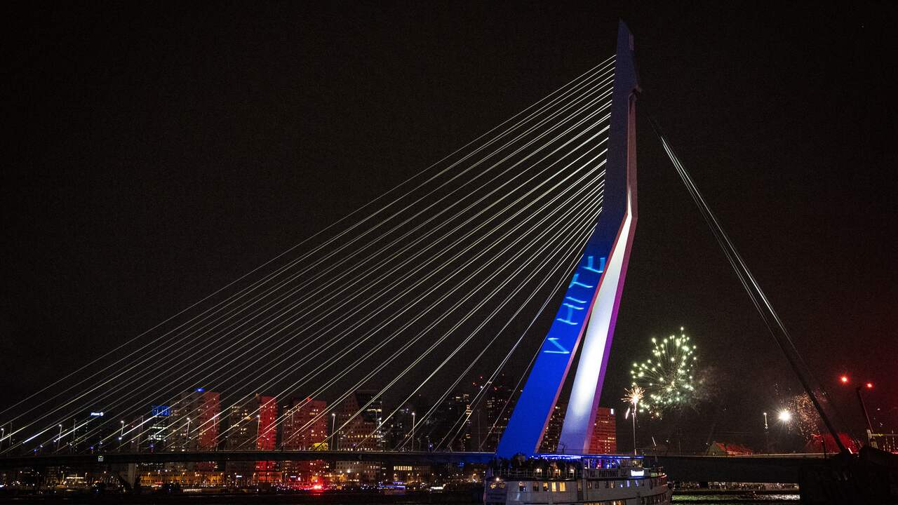 Het Openbaar Ministerie in Rotterdam heeft dinsdag zes maanden cel geëist tegen twee mannen vanwege onder meer het projecteren van racistische leuzen op de Erasmusbrug tijdens de jaarwisseling van 2022 en 2023.