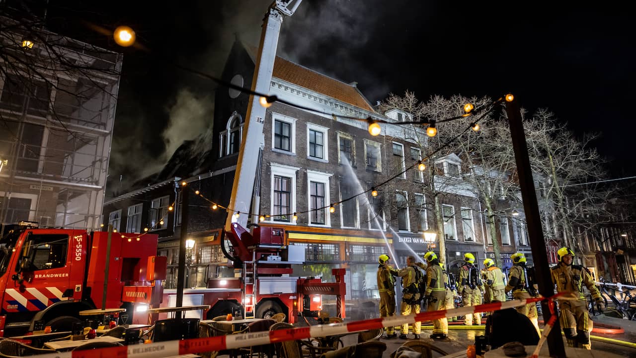 De grote brand die dinsdagavond uitbrak in het centrum van Delft is “grotendeels onder controle”, meldt de brandweer in de nacht. Het nablussen zal alleen nog uren duren.