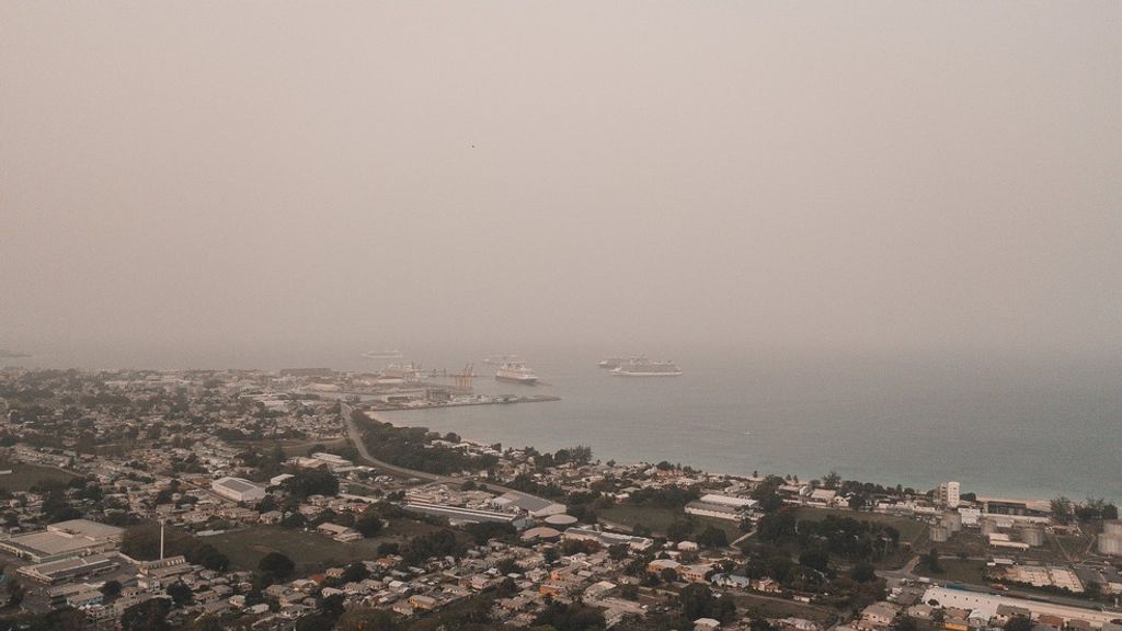 Een enorme wolk met zand vanuit de Sahara bedekt een groot deel van het Caribisch gebied. De zandwolk heeft volgens experts een omvang zo groot als de Verenigde Staten.