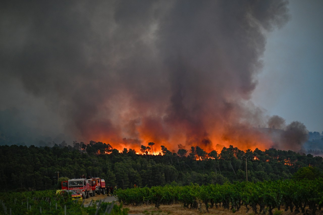 De grote bosbrand in het Zuid-Franse departement Aude heeft zich verder uitgebreid, mede door het droge hete weer. De brand geldt inmiddels als grootste in Frankrijk sinds 1949. Zeker 160 vierkante kilometer is getroffen. Het vuur is wel minder intensief, doordat de wind wat is gaan liggen.
