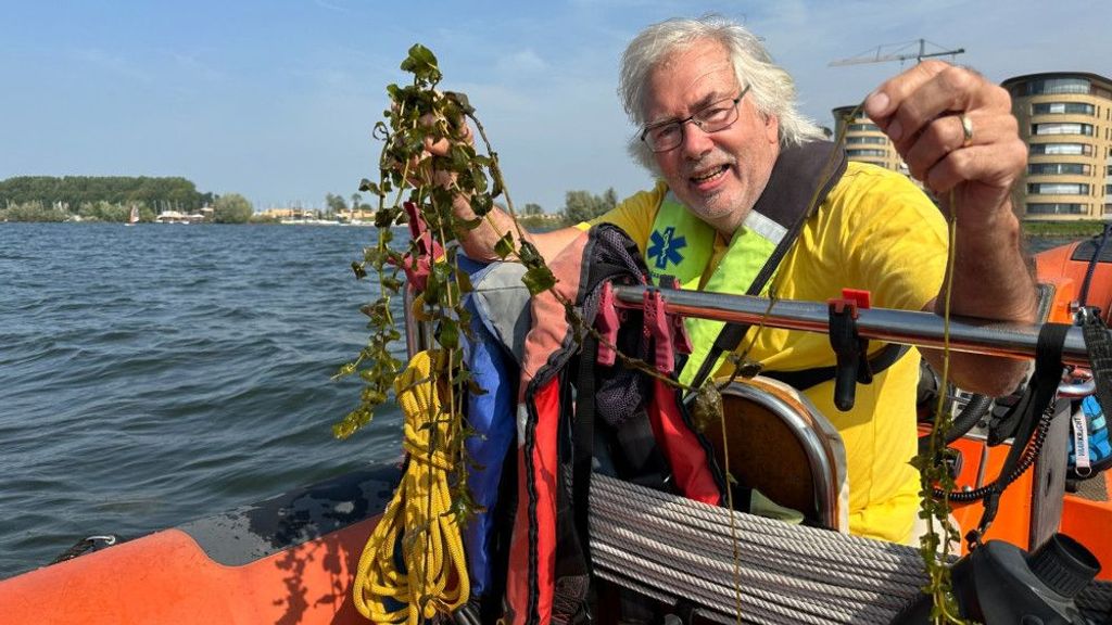 Ook dit jaar zitten Nederlandse wateren vol met waterplanten. Dat leidt tot problemen bij watersporters en boten, maar ook aan de kant blijven badgasten liever weg. “Het stinkt enorm”, zegt Henk Wijga van de reddingsdienst.