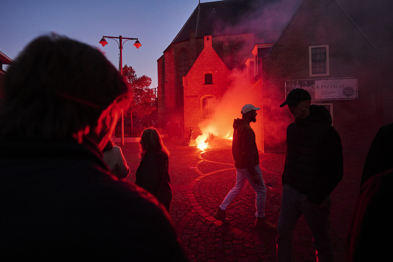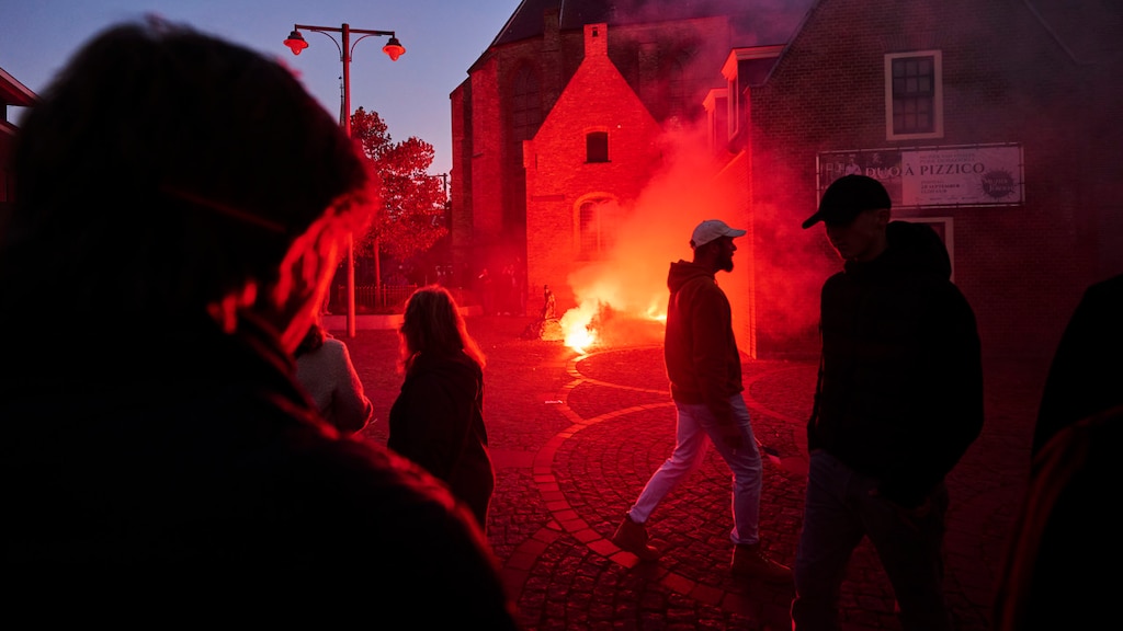 In Noordwijk heeft de politie bijna tweehonderd mensen weggestuurd die buiten op een plein bij een kerk stonden, waarin de gemeente op dat moment vergaderde over een toekomstig azc. Na een tijdje werden rode rookbommen afgestoken en voor de toegangsdeur gegooid.