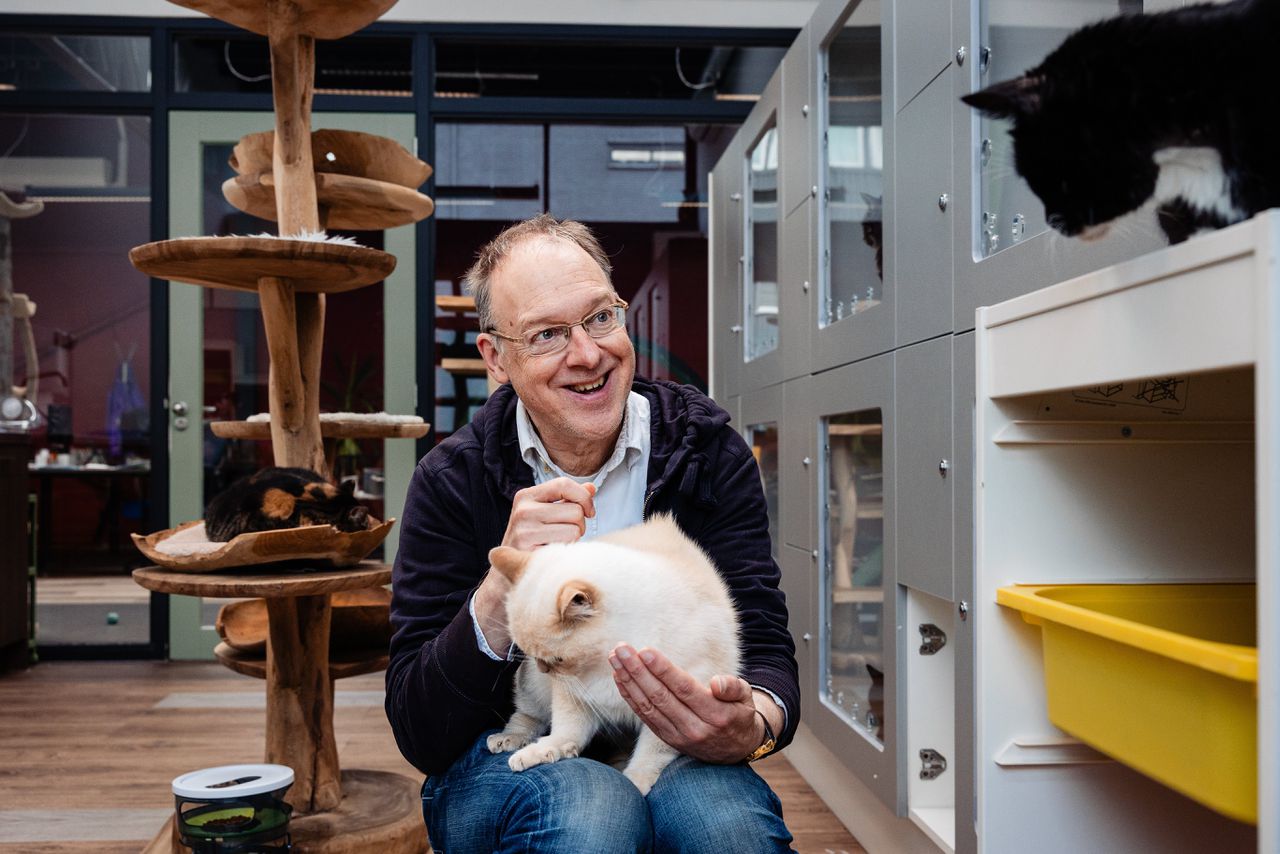 In zijn nieuwe boek beschrijft Maarten Reesink hoe mensen en katachtigen met elkaar omgaan. „Katten hebben zich dubbel moeten aanpassen.”