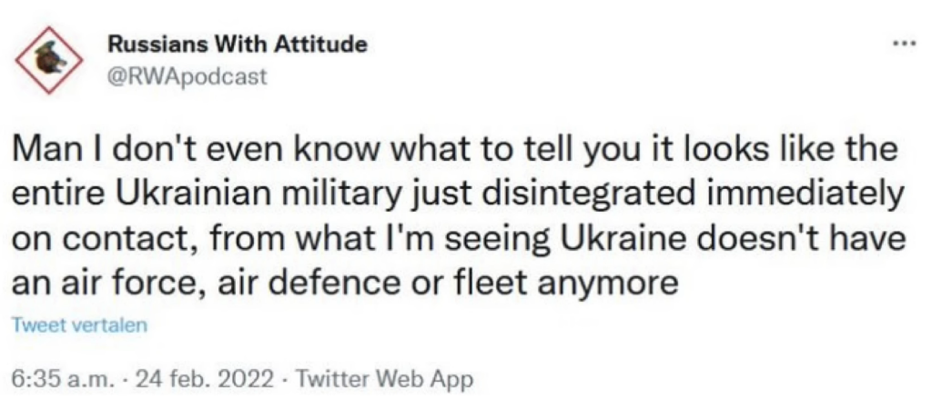 Yeah, problem is that you lot have been going on about how the war will inevitably and swiftly end in a Russian victory every day since the war started - often in the same hyperbolic way that you’re writing now (see attached image). The sources I’ve preferred to follow have been clear from the beginning that this is going to take a while, and that the outcome is not certain (aside from the fact that it will be horrible for both Russians and Ukrainians)